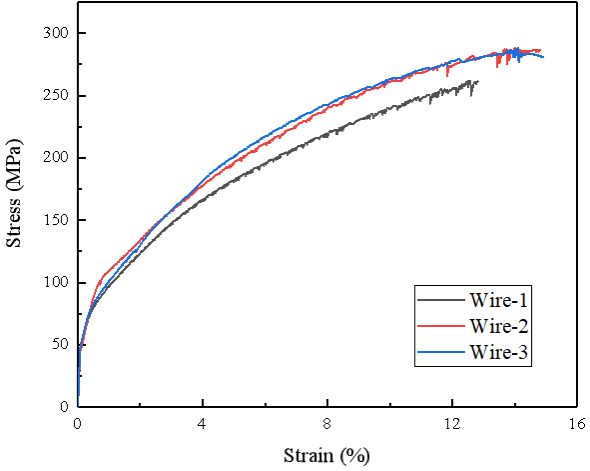 图2. 三种焊丝焊接接头的应力-应变曲线