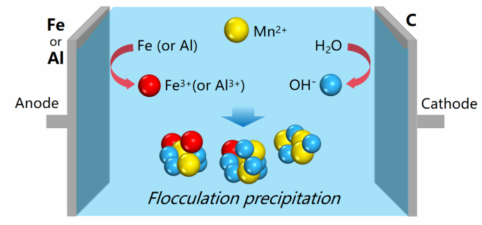 研究团队对比分析了化学沉淀、膜分离、电化学及生物法等主流技术。其中,碳酸盐沉淀法通过调控pH与加料顺序,实现锰选择性回收率超95%;电化学法结合太阳能驱动,在低能耗(<3.5 kWh/m³)下同步去除锰与氨氮,出水达国家一级标准。此外,团队提出的“氧化-鸟粪石沉淀”组合工艺,可将锰、镁、氨氮分步回收为工业级锰氧化物与农业肥料,单吨废水处理净收益达282美元,兼具经济与环境效益。