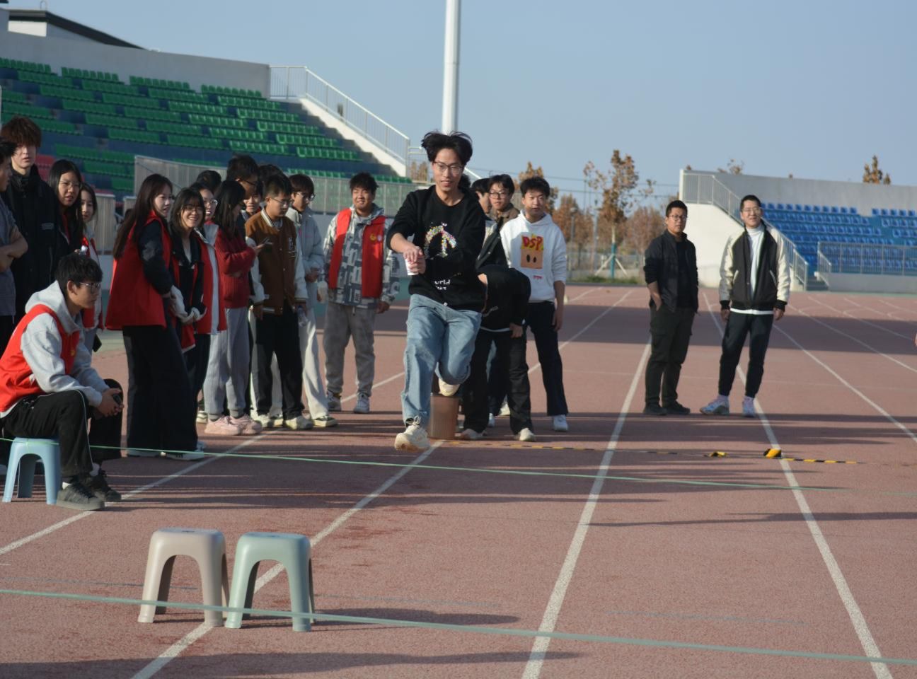 本次运动会设置摸石过河、南水北调、开心消消乐、极速三子棋、零食大作战五大特色项目。在摸石过河环节,智能采矿工程专业辅导员何孟潮老师身手矫健,带领学生团队以默契配合完成20米泡沫板接力,引发现场惊呼;南水北调项目中,矿物加工工程专业班主任曹恩豪老师与师生组合接力传递20升水,最终保住超10升水量,展现精准协作能力;开心消消乐通过师生策略配合翻牌寻对,现场欢笑与懊恼声交织,凸显记忆与统筹的双重挑战;极速三子棋则由冶金工程专业师生配合完成绝杀棋局,展现智慧与速度的完美结合;零食大作战环节,班主任化身“零食战士”拼手速抢零食,操场秒变“甜蜜战场”,师生默契配合“吃”出友谊、“战”出精彩。