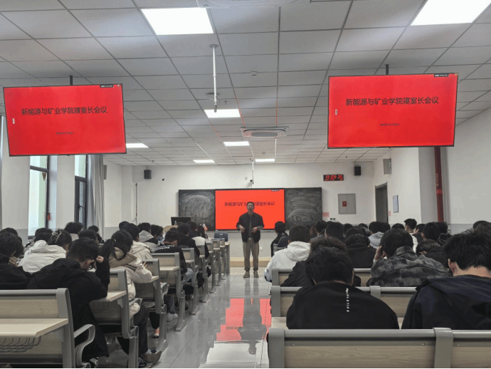 11月27日下午,新能源与矿业学院于A1-B-512教室召开本学期寝室长会议。会议由学院学生工作办公室主任王梓懿主讲,学院辅导员和全体2025级学生寝室长参加会议。会议围绕学风建设、纪律管理、心理健康、反诈防骗和寝室建设五大核心内容展开,旨在构建安全、和谐、向上的宿舍文化氛围。