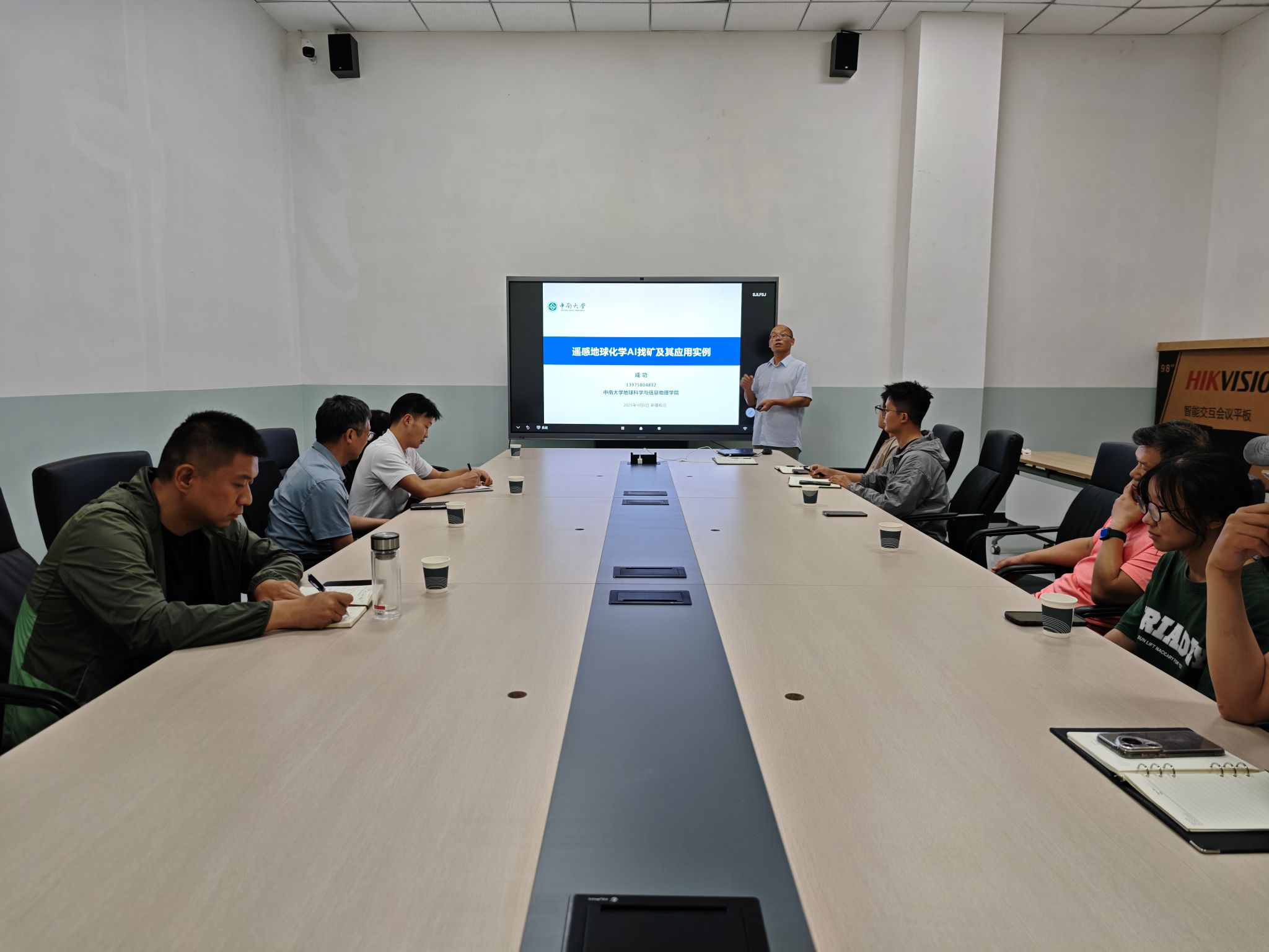 交流会上,成功博士以《遥感地球化学AI找矿及其应用实例》为题作专题讲座。他系统阐释了遥感地球化学与人工智能算法深度融合的技术原理,结合老挝铝土矿、西非毛里塔尼亚金矿等找矿案例,详细介绍了该技术在“缩短勘查周期、降低勘探成本、提高找矿精度”方面的显著优势,可以大量减少野外工作,突破新疆西昆仑高海拔、深切割地区传统地质找矿难以开展野外工作的瓶颈。讲座结束后,成功博士还就讲座过程中的难点问题与学院青年教师展开热烈研讨,现场交流氛围浓厚。
