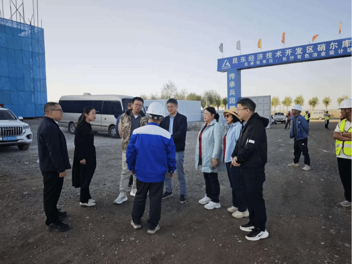 调研期间,学院一行在第七师兵地融合发展民丰产业园党委委员,昆东经济技术开发区党工委委员、管委会副主任李晨升等的陪同下,实地考察了民丰产业园下辖的有色金属冶炼及化工园区、农副产品加工园区、新型建材产业园区等多个项目,详细了解了锑矿采选、冶炼、精深加工、产品应用以及绿色生产技术的现状与发展趋势。