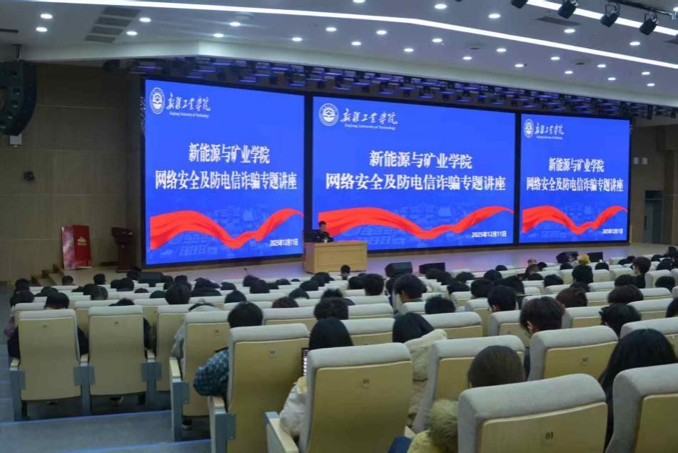 为深入贯彻落实总体国家安全观,提升学生安全防范意识与能力,筑牢校园安全防线,12月11日,新能源与矿业学院联合学校党委学生工作部、保卫部在学术报告厅举办了网络安全与防范电信诈骗专题讲座。活动特邀资深安全领域专家余聪警官主讲,面向全院学生开展全覆盖式专题教育。