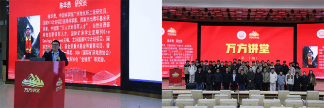 2025年12月24日“万方讲堂”第二十期在励学楼学术报告厅顺利开讲。本次讲座由李斌院长主持,特邀陈华勇研究员作“蚀变矿物勘查思考与实践”专题分享,全校优秀学生代表与青年教师齐聚一堂,共探矿产勘查创新之道。